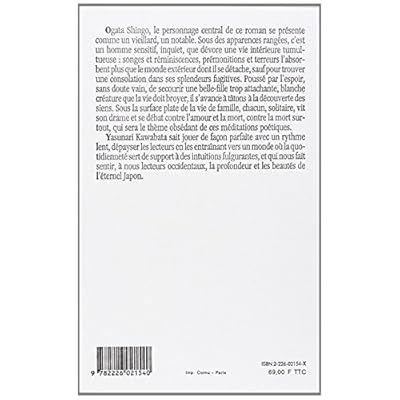 Ogata Shingo, le personnage central de ce roman se présente comme un vieillard, un notable. Sous des apparences rangées, c'est un homme sensitif inquiet, que dévore une vie intérieure tumultueuse : songes et réminiscences, prémonitions et terreurs l'absorbent plus que le monde extérieur dont il se détache, sauf pour trouver une consolation dans ses splendeurs fugitives. Poussé par l'espoir, sans doute vain, de secourir une belle-fille trop attachante, blanche créature que la vie doit broyer, il s'avance à tâtons à la découverte des siens. Sous la surface plate de la vie de famille, chacun, solitaire, vit son drame et se débat contre l'amour et la mort, contre la mort surtout, qui sera le thème obsédant de ces méditations poétiques. Yasunari Kawabata sait jouer de façon parfaite avec un rythme lent, dépayser les lecteurs en les entraînant vers un monde où la quotidienneté sert de support à des intuitions fulgurantes, et qui nous fait sentir, à nous lecteurs occidentaux, la profondeur et les beautés de l'éternel Japon.